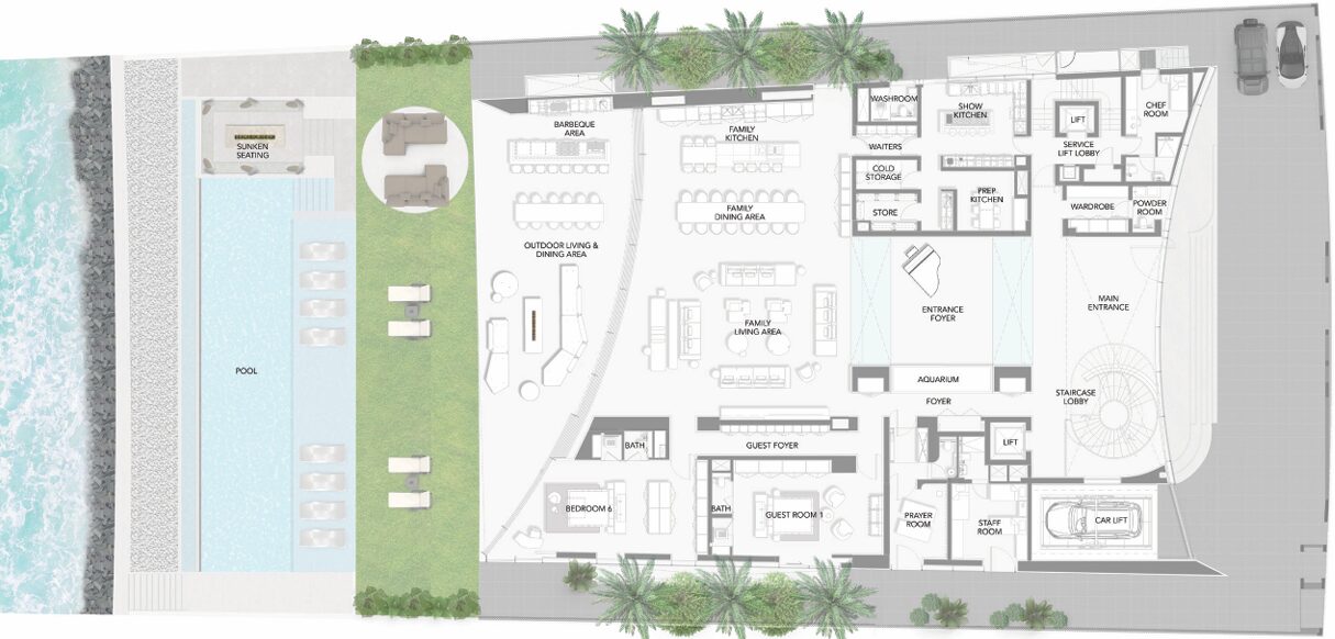 Enjoy private pools, spa, fitness zones, cinema room, rooftop lounges, and seamless access to La Mer beachfront lifestyle.